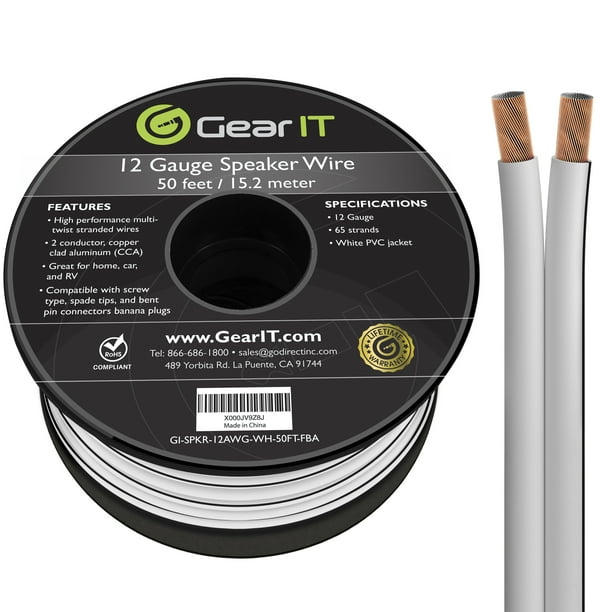Gearit 12awg Speaker Wire 12 Gauge Copper Clad Aluminum For Home Theater And Car Audio Systems White 50 Ft Walmart Com